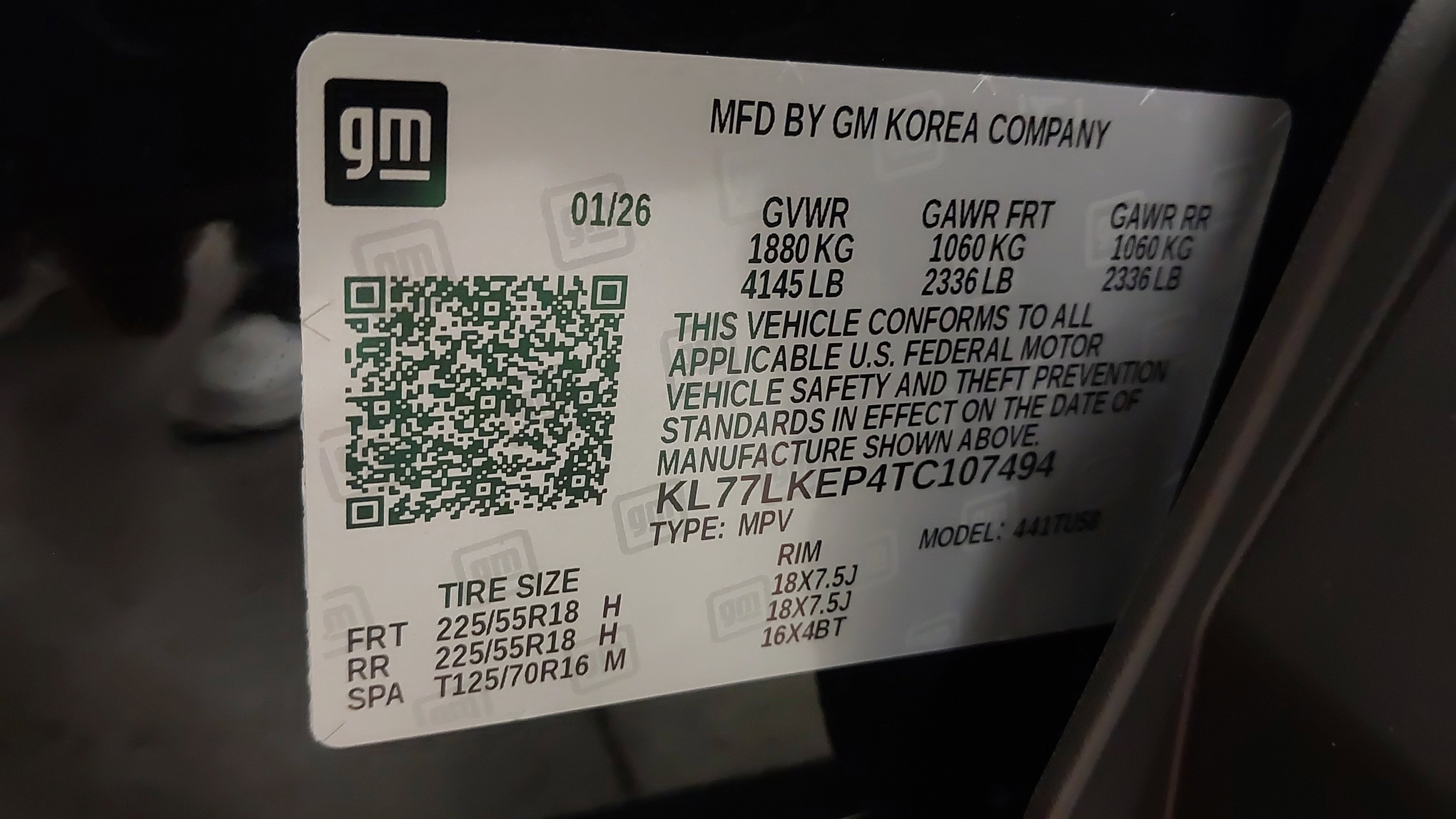 - Tires, 225/55R18 all-season, blackwall
