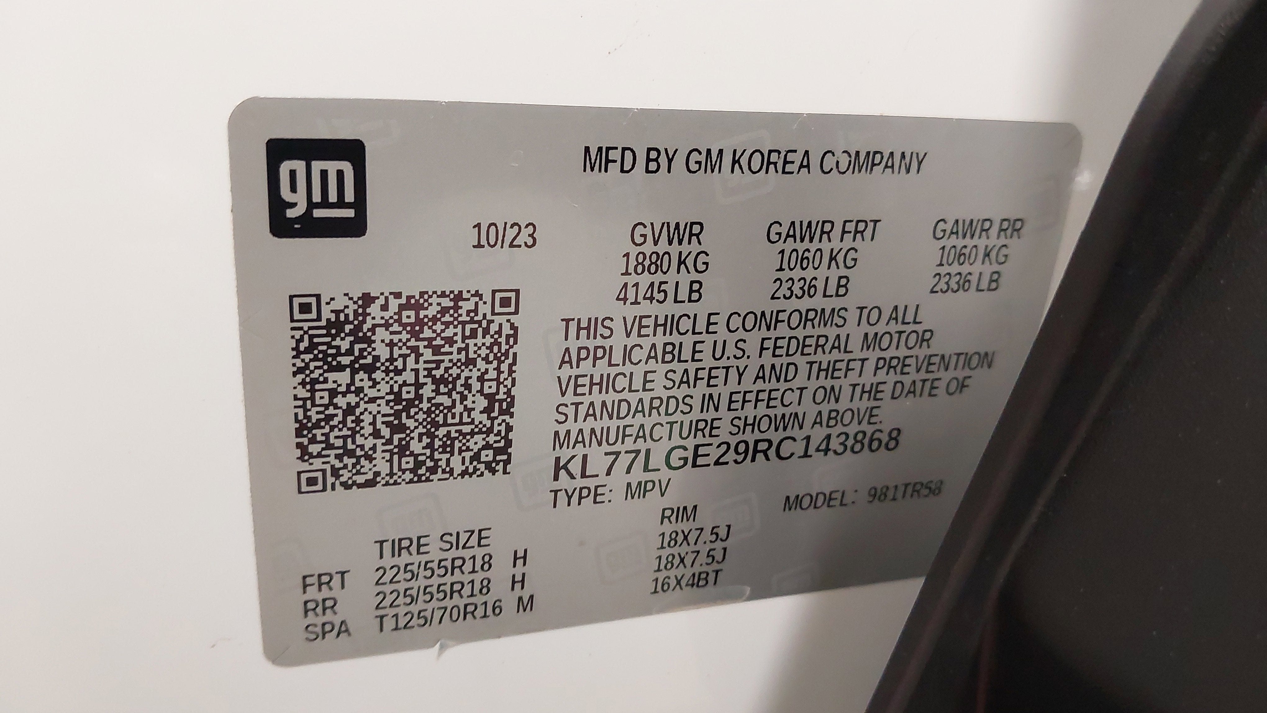 - Headliner material: Cloth headliner material